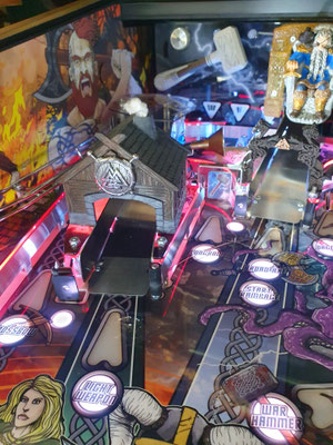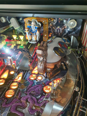 En outre, le marteau de Thor, qui est monté sur le panneau arrière et activé par un bouton de 3e bastonne, s'écrase sur la balle qui est maintenue par un aimant juste au-dessus des voies supérieures, simulant une frappe de foudre spectaculaire, ajoutant à l'expérience de jeu.