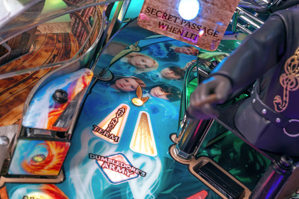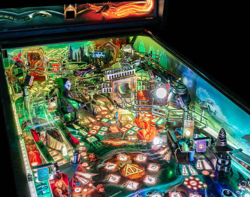 Les joueurs célébreront cet univers grâce à des effets lumineux, sonores et animés envoûtants, des escaliers mobiles et le Chemin de Traverse au Chapeau magique et au multiball Explore Potter.