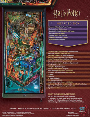 Les flippers Harry Potter sont fièrement fabriqués aux États-Unis. Les éditions Collector et Wizard comprennent une connectivité Wi-Fi et Bluetooth pour les futures mises à jour, des fonctionnalités de score et une intégration en ligne.