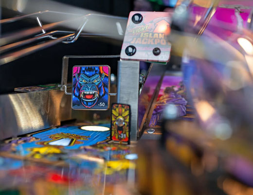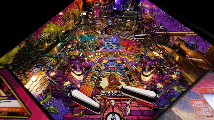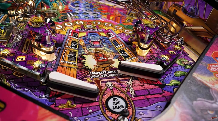 fixe cachée, et explorez la grotte de Kong et le kicker vertical. Survivez à la cible de kick-back de Kong, qui renvoie les billes vers le joueur.