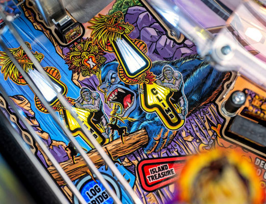fixe cachée, et explorez la grotte de Kong et le kicker vertical. Survivez à la cible de kick-back de Kong, qui renvoie les billes vers le joueur.