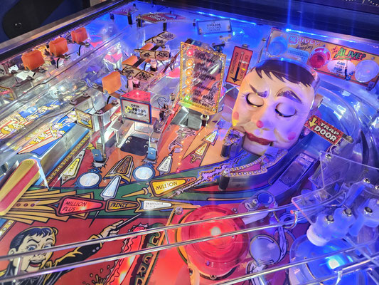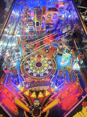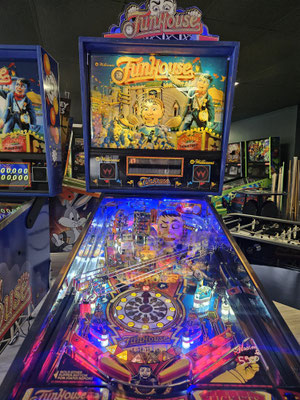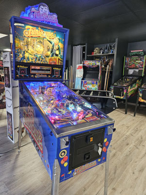 Flipper d'occasion,avec plateau réimprimer et revernis. Caisse restickée, topper, miroirs et passé en led.