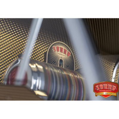 des années 50, du cabinet au lettrage. Sous le capot se trouvent notre mécanisme 80 CD, un ampli stéréo 60w RMS et des haut-parleurs à cinq voies. Ajoutez une télécommande et une
